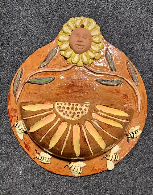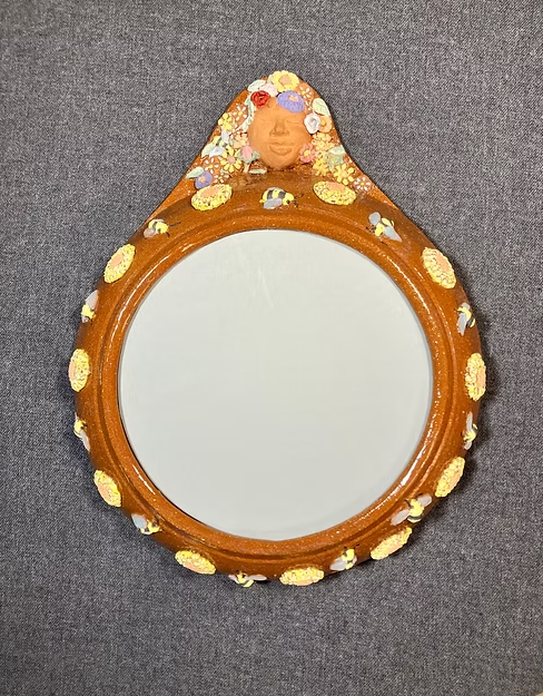 Renlyn grew up near Detroit, Michigan across the lake to Windsor, Canada. Detroit's cultural scene was stimulating and provided significant visual influences. She loved to visit the Detroit Institute of Arts where she saw the first full Diego Rivera exhibit which influenced her Spirit series. She believes that Rivera portrayed the women’s strong hands as a symbol of their power and fortitude. The flowers which calm our hearts are significant in every mural. For Renlyn’s Spirit series, she is sharing her love of each flower's color and unique form. She offers a personal style of hand-crafted candle holders, mirrors and wall pockets which remind us we are “of the earth” with every smudge or swipe of the clay.